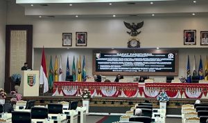 Lampung – Wakil Ketua I DPRD Provinsi Lampung, Kostiana, dan Sekretaris DPRD Provinsi Lampung, Tina Malinda, menghadiri upacara pelantikan dan pengambilan sumpah jabatan Bupati Way Kanan di Provinsi Lampung.