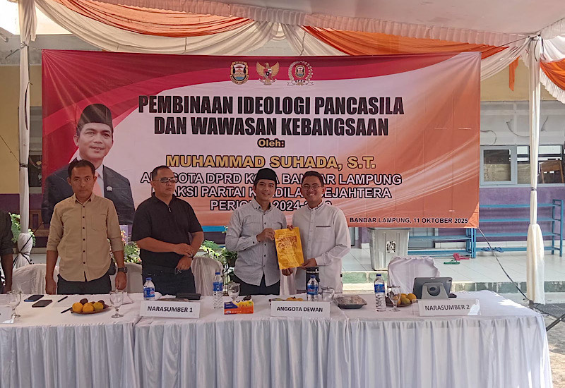 Axelerasi – Anggota Dewan Perwakilan Rakyat Daerah (DPRD) Kota Bandar Lampung, Muhammad Suhada, menggelar kegiatan Pembinaan Ideologi Pancasila dan Wawasan Kebangsaan bagi generasi muda, di SMP IT Cahaya Ilmu Bandar Lampung, Sabtu 11 Oktober 2025.