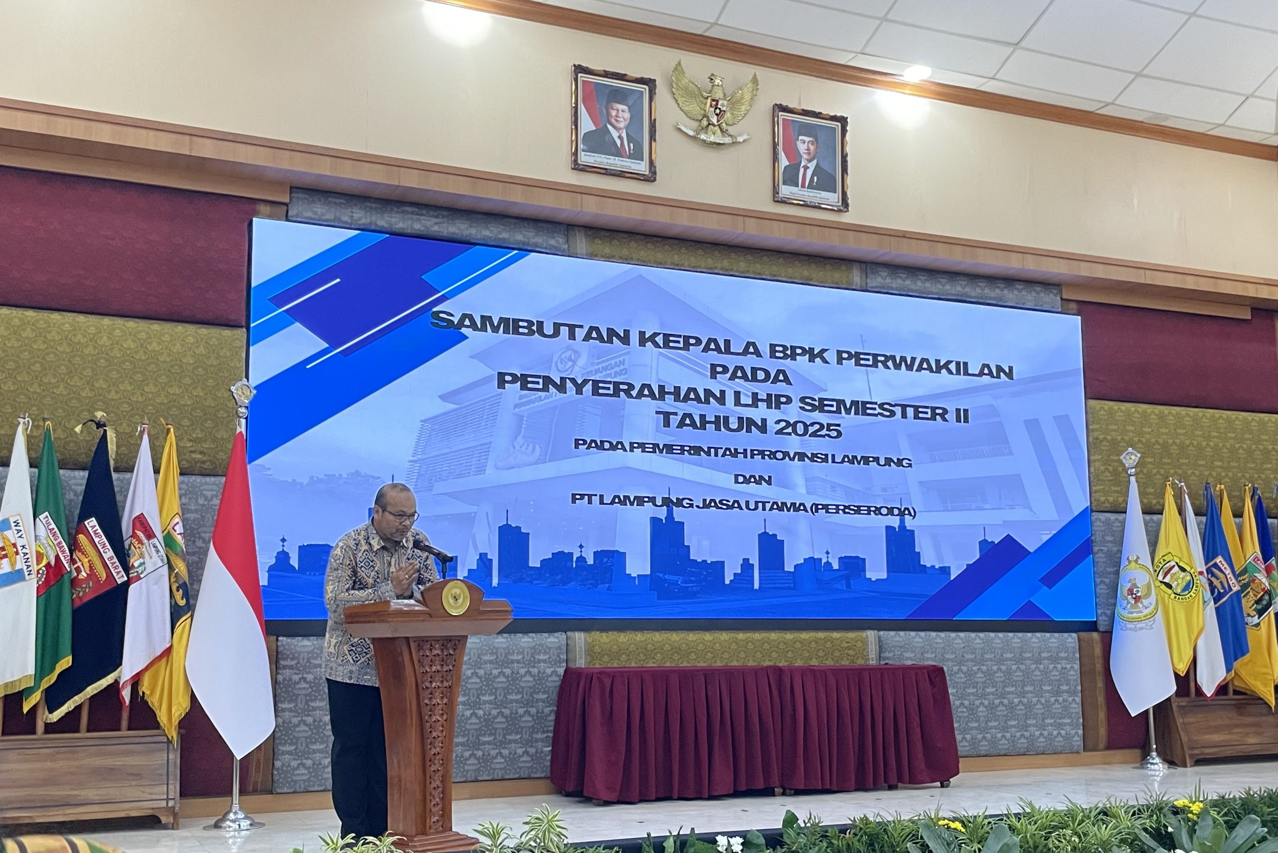 Kepala Badan Pemeriksa Keuangan (BPK) Perwakilan Provinsi Lampung Nugroho Heru Wibowo Resmi menyerahkan Laporan Hasil Pemeriksaan (LHP) Semester II Tahun 2025 kepada Pemerintah Provinsi Lampung dan sejumlah instansi terkait.