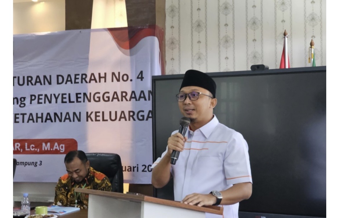 Axelerasi.Id – Anggota DPRD Provinsi Lampung Dapil III (Metro, Pesawaran, Pringsewu), M. Syukron Muchtar, menegaskan pentingnya penguatan ketahanan keluarga sebagai fondasi membangun masyarakat yang kuat. Hal itu disampaikannya saat Sosialisasi Perda Nomor 4 Tahun 2018 tentang Penyelenggaraan Pembangunan Ketahanan Keluarga di Aula SMK Muhammadiyah Metro Timur, Sabtu (24/1).