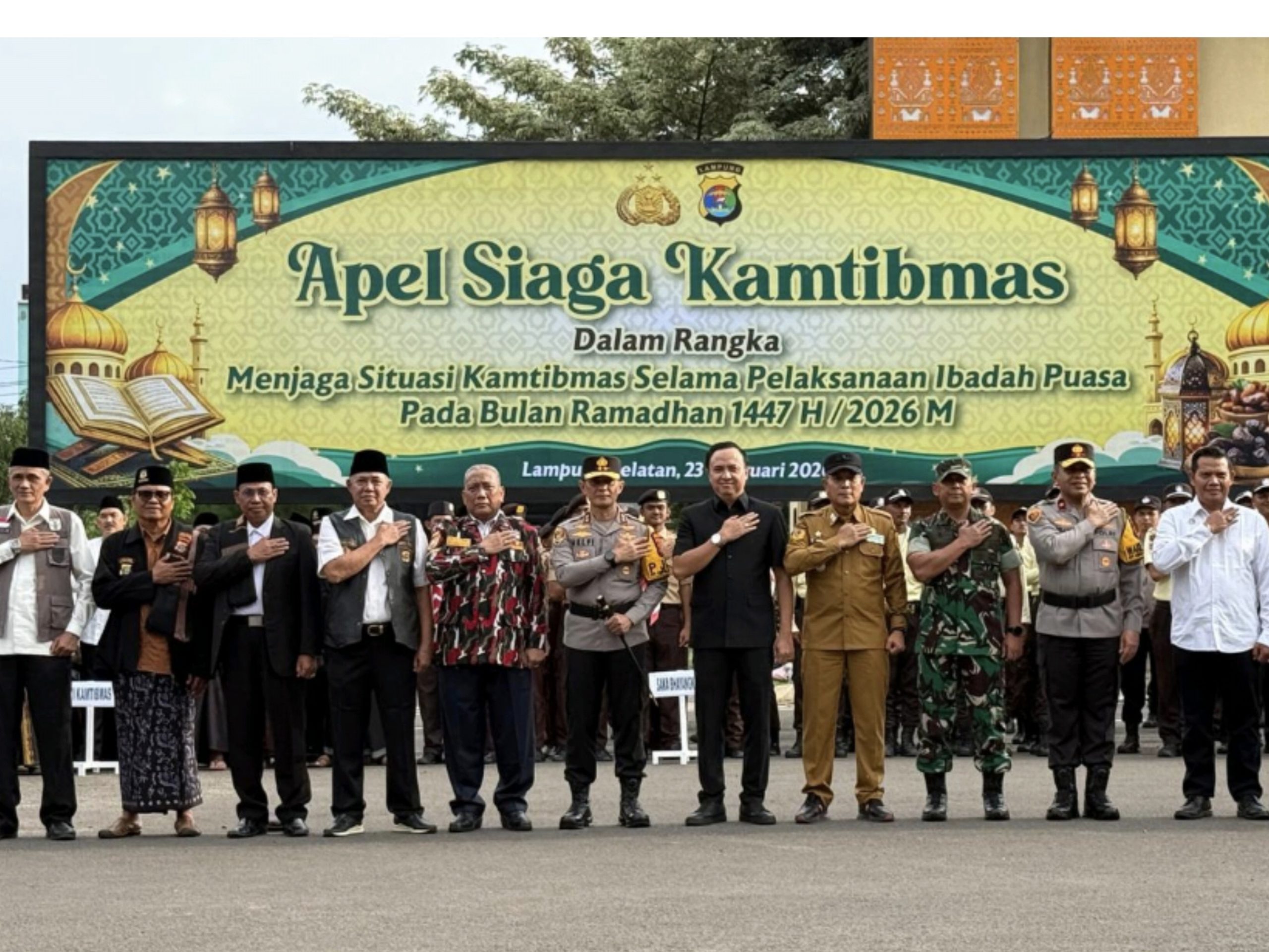Apel Siaga dipimpin langsung Kapolda Lampung dan diikuti unsur TNI, Polri, Satpol PP, Dinas Perhubungan, BPBD, tenaga kesehatan, serta organisasi kemasyarakatan.